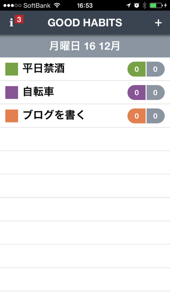 まずはアプリを立ち上げ、画面右上の+ボタンをタップして目標とする習慣を入力していきます。習慣の名前、実行する日(毎日、平日のみ、週末のみなど)、さらにリマインダーの設定をしましょう。例えば「朝のジョギング」という新習慣なら7AMにリマインダーを設定して「仕事前に走りに行くようにする」など、実行できそうなタイミングに通知が来るようにすると効果的です。